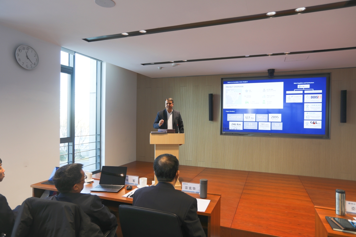 会上,swag 绿地开发中心介绍了在巴西开展新能源项目建设情况,三峡巴西公司新能源部主任Lucas等四位属地员工分别围绕新能源项目开发以及项目建设中质量管控、安全管理、成本控制等方面进行了分享交流。