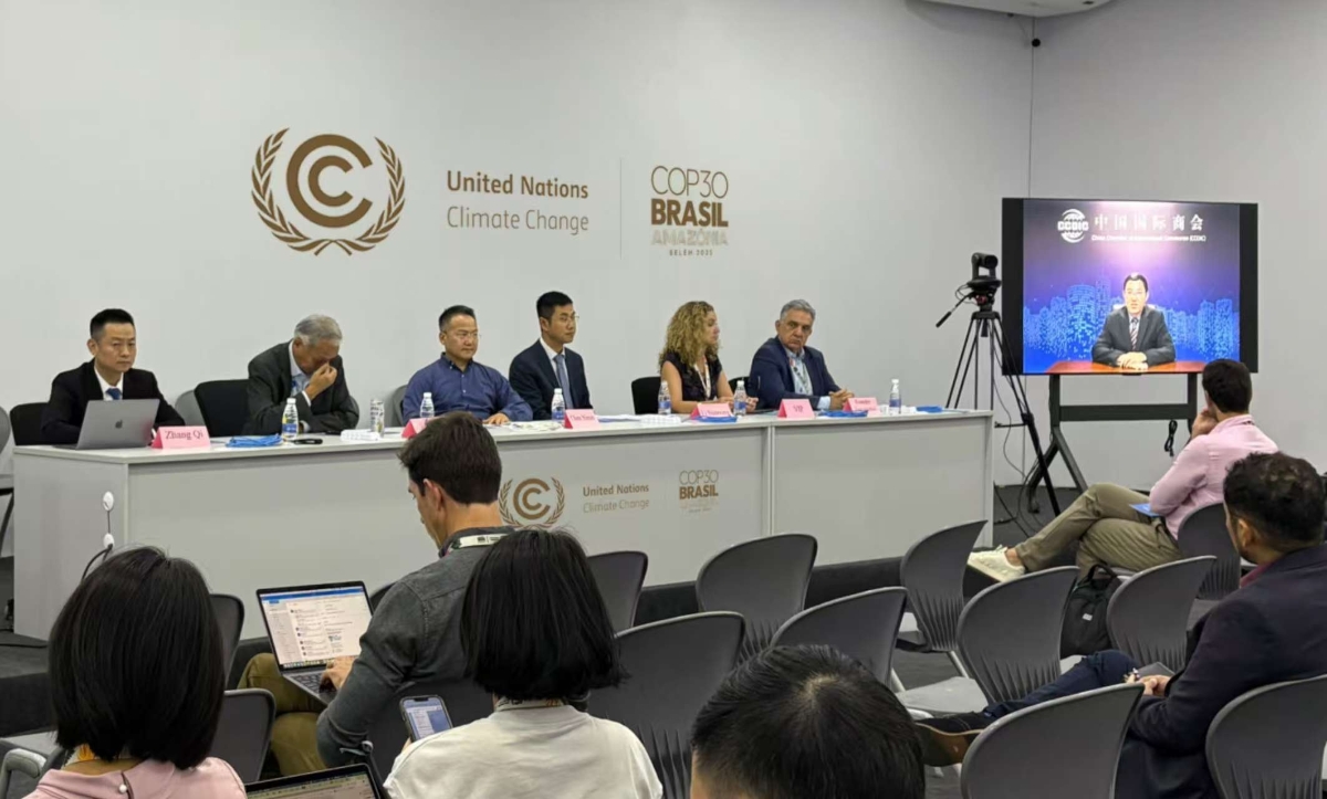 当地时间11月12日上午,中国国际商会可持续发展工作委员会在COP30大会中国角举办“中国工商力量推动全球气候转型”主题边会,中外嘉宾围绕中国在绿色供应链和能源转型领域的创新成果、促进国际间技术合作与政策对话、推动全球工商界共同制定可落地的气候行动方案等议题展开深入讨论。